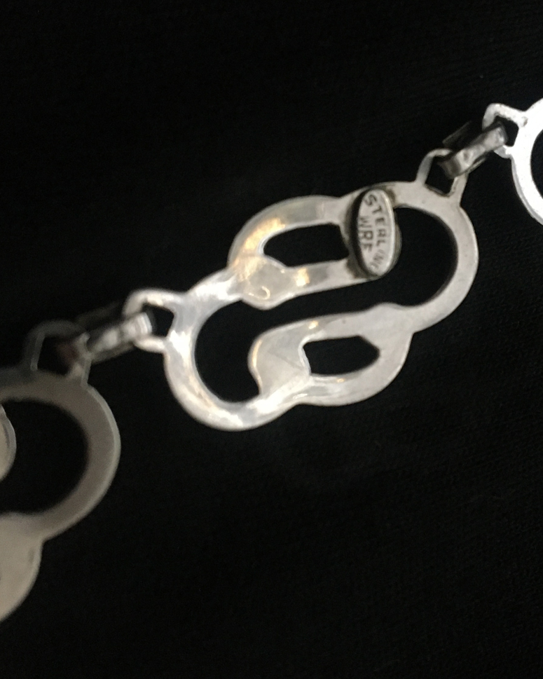 Designed and made by W. E. Richards Company of Attleboro, Massachusetts, which was founded in 1902. Hallmarked WRE. Their jewelry includes early century designs and art deco.