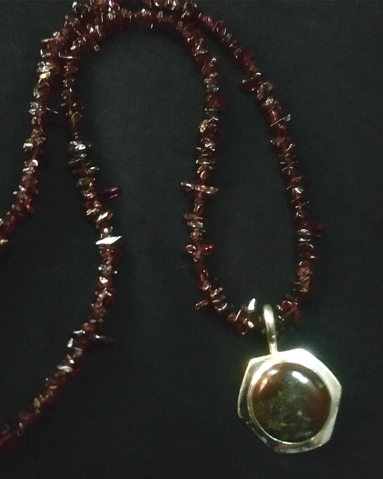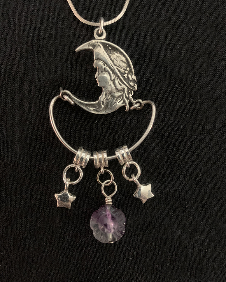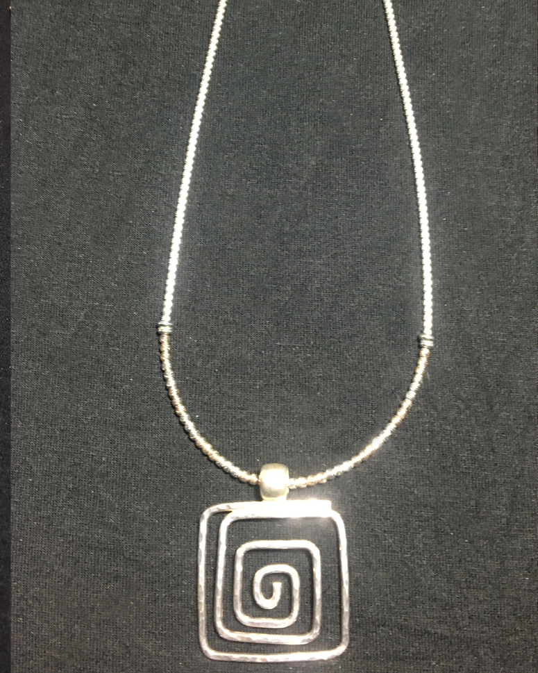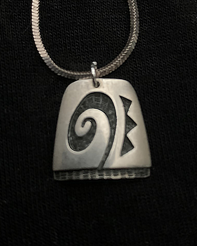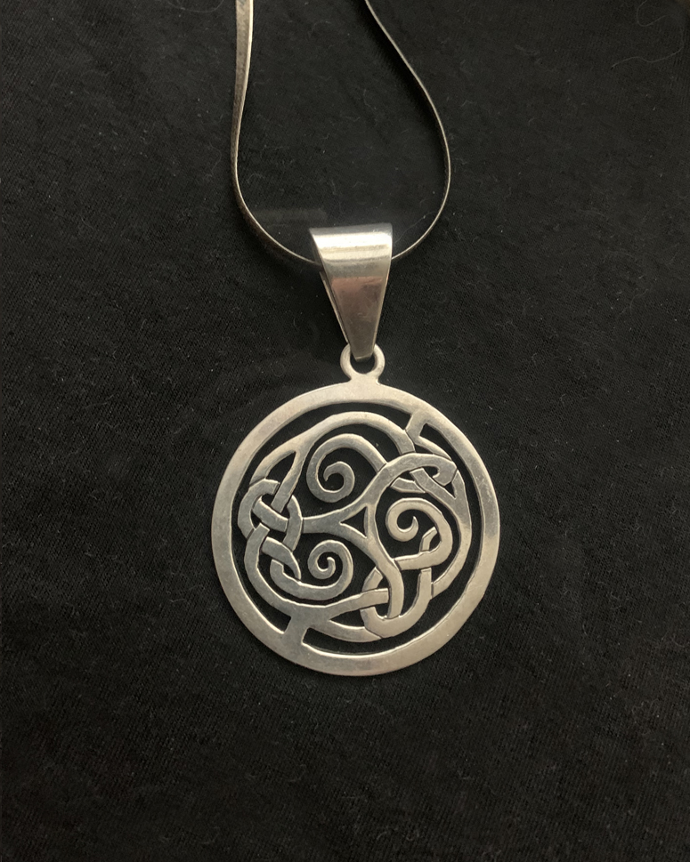 Hand hammered sterling silver pendant with mythic spiral, on a gorgeous large link old pawn 28" chain.