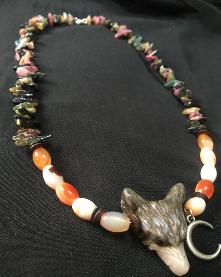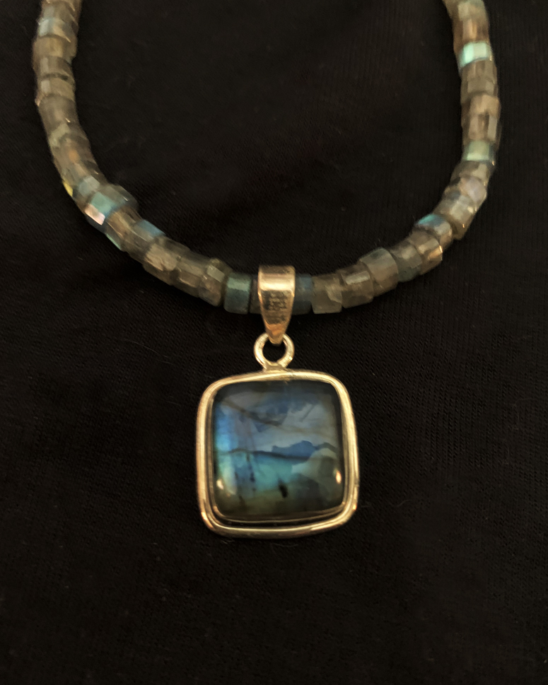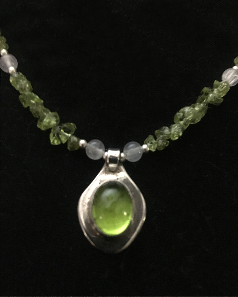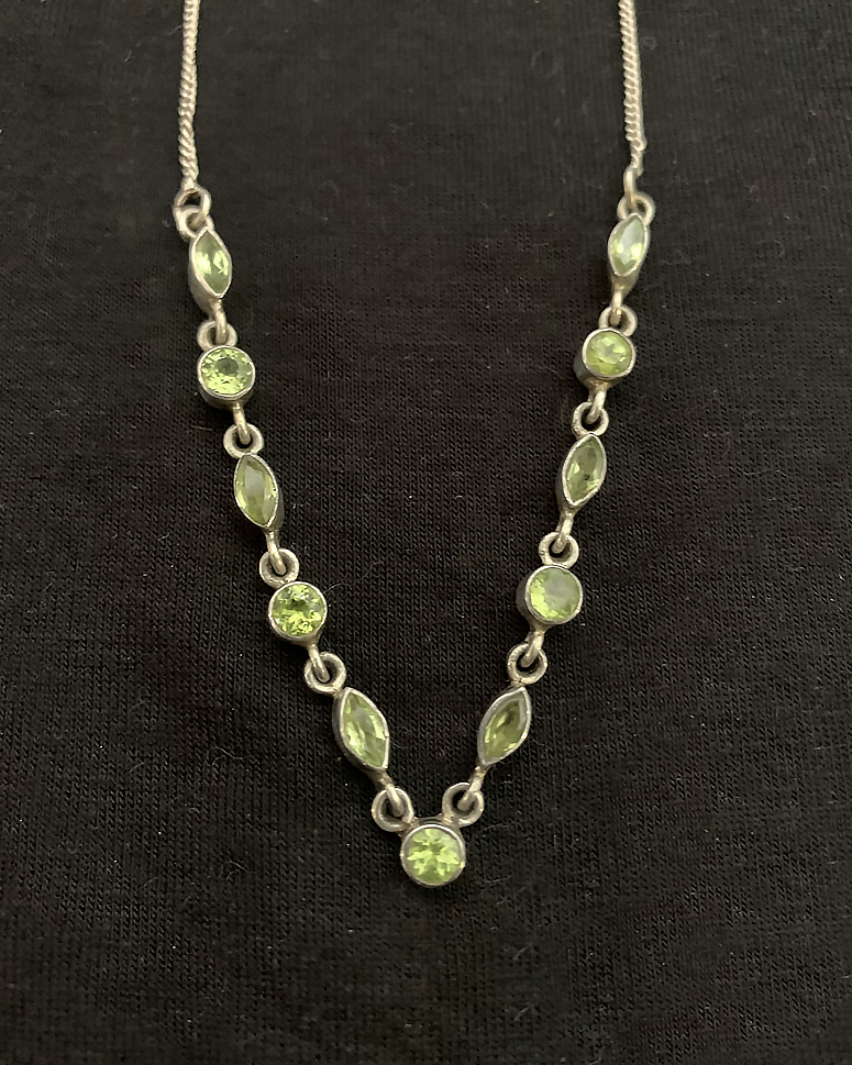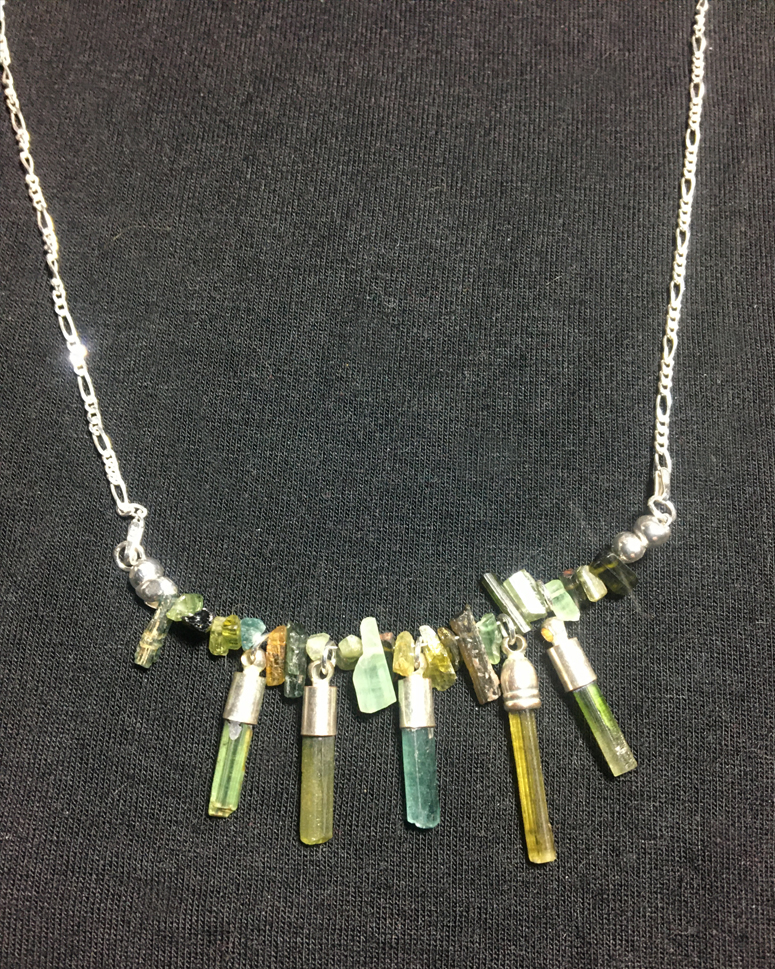 Terminated Green, Blue, and Amber Tourmaline Crystals, Elbaite and Indicolite, on a tourmaline and dainty 18" sterling silver necklace