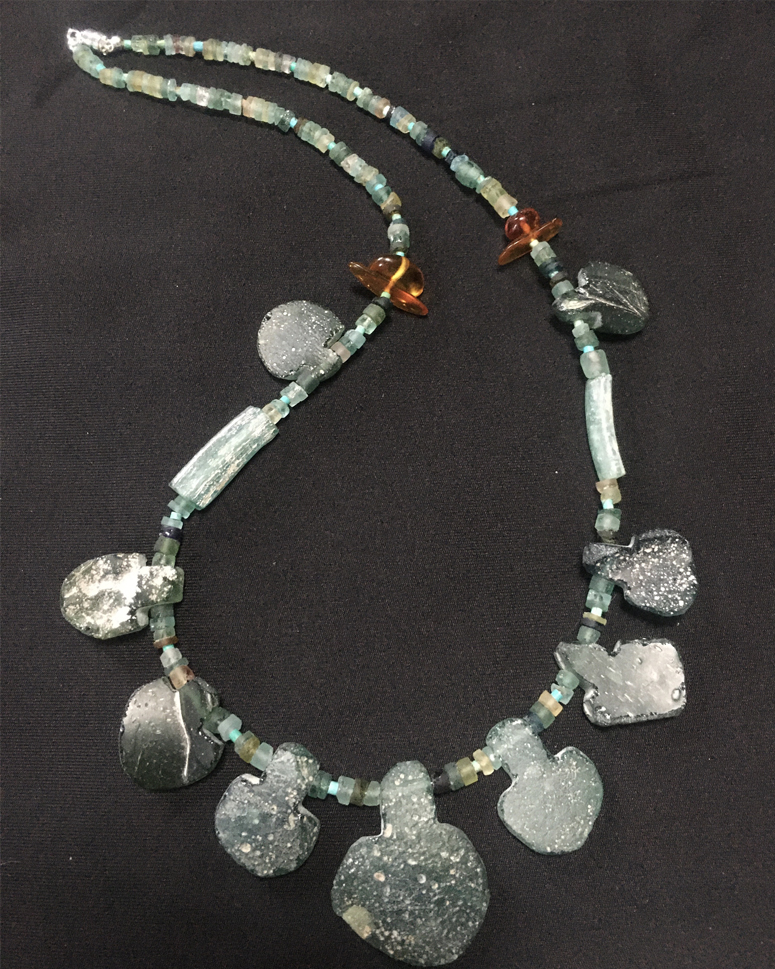 Ancient Roman glass, circa 60 BC-100AD, fashioned into beads and pendants for a stunning and historic one of a kind necklace