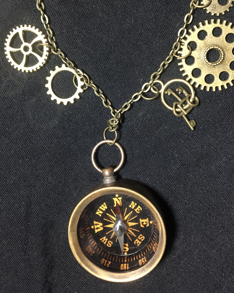 This charm-ing long necklace celebrates the retrofuturistic technology explored in steampunk fiction, Inspired by 19th century innovation and machinery, designed with a post-apocalyptic wink.