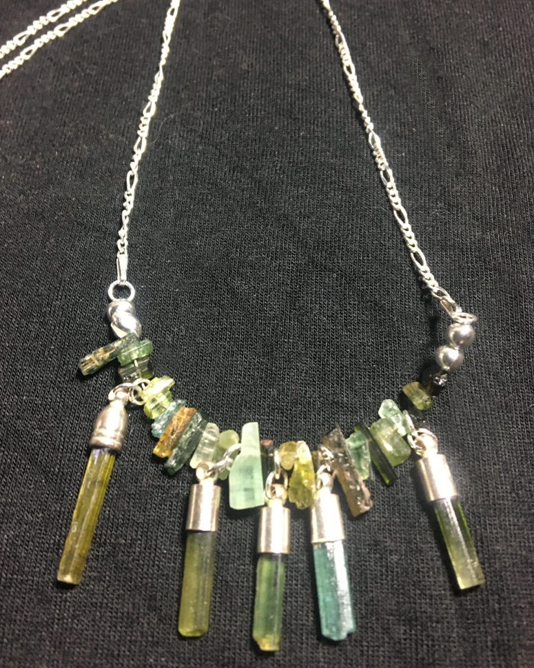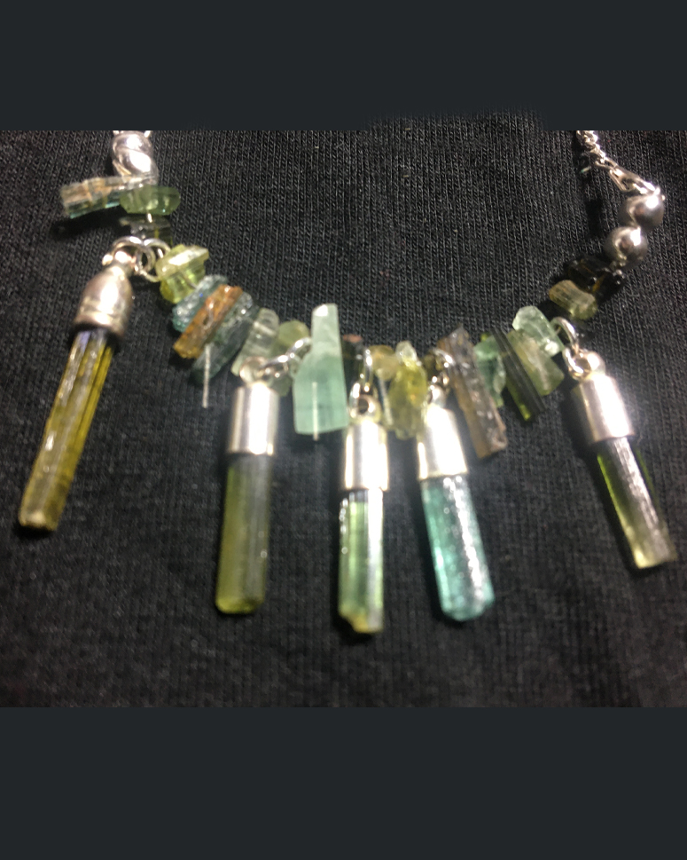 The tourmalines used here are from World locations, as Maine crystals have become much sought-after, and extremely expensive.